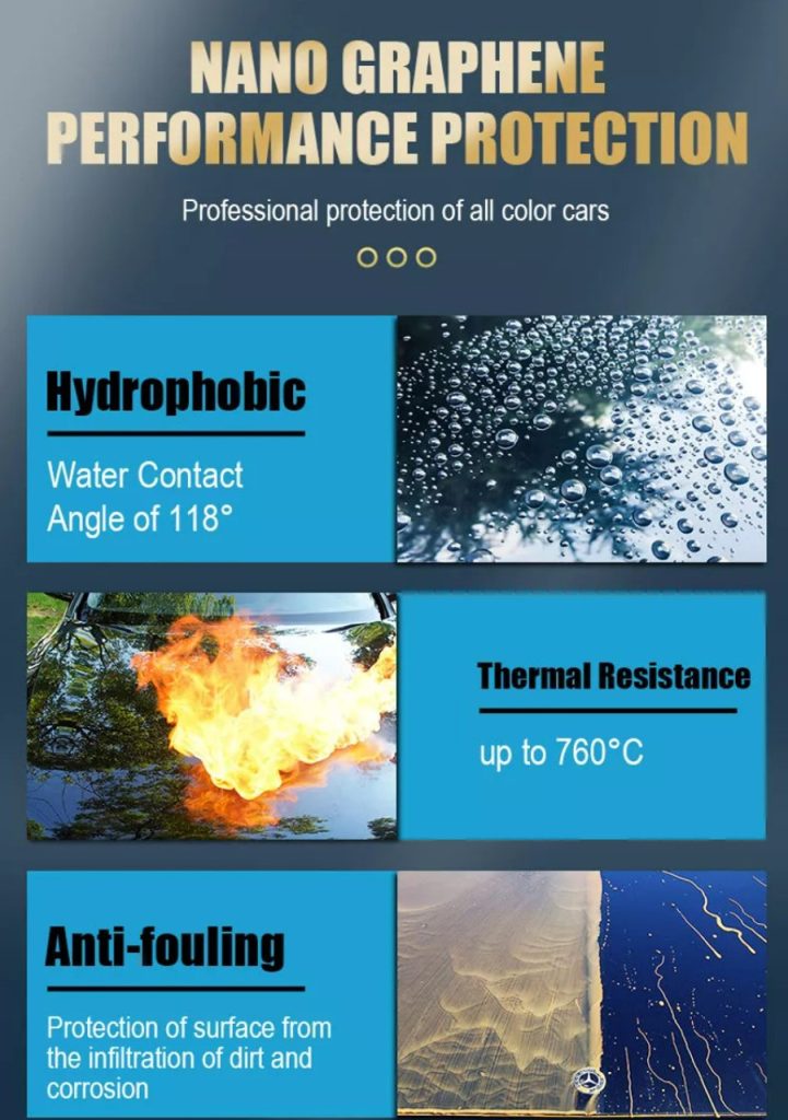 La única solución al problema. Conocido también como «Protección cerámico», es un recubrimiento de protección basado en lo último en nanotecnología. Se trata de una capa que se aplica sobre las superficies del vehículo, brindándole protección y brillo a largo plazo. Formulado a base de elementos como el dióxido de silicio, carbono y grafeno, éste ofrece mayores ventajas que cualquier otro producto en el mercado.